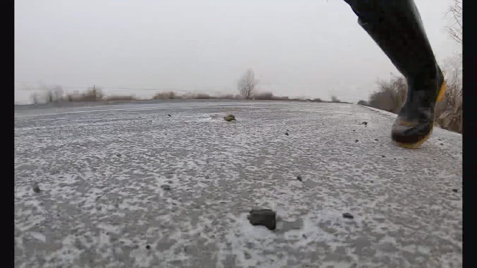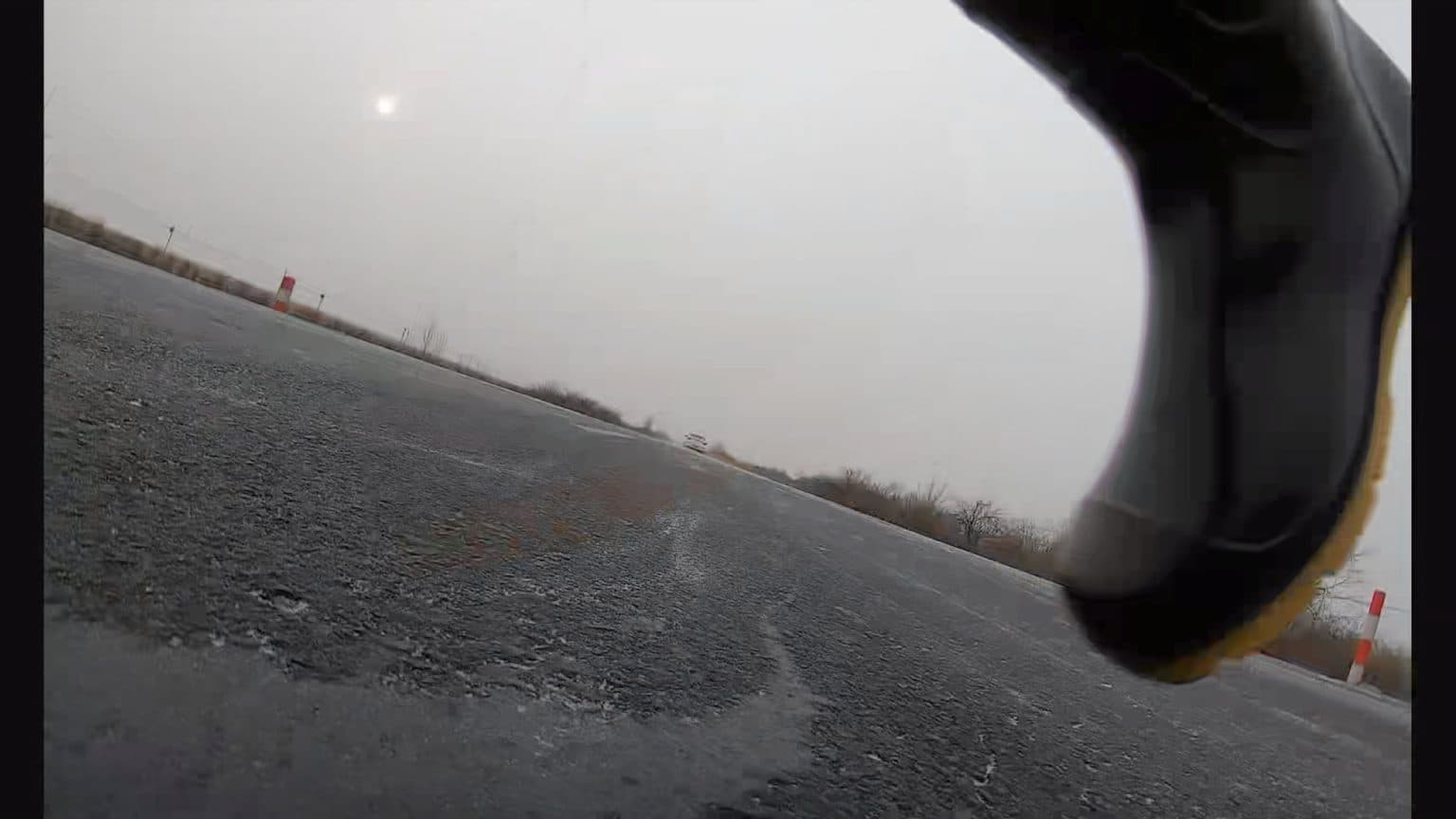 路上汽車朝向公認的正當方向行駛,藝術家腿上綁著相機,在道路上的每一次驚心動魄的穿越,都主動選擇擁抱“赤裸生命“,躲避並抗爭資本碾壓的境遇。在速度與重量的逼迫中,藝術家用身體劃出 一條條縫隙,提示每位觀者我們的生活境域。使我們忘記“赤裸生命” 的風險,蠢蠢欲動。而鏡頭讓這個短暫的行動存檔,傳播,如同博物 館裡保留著的一種遼代貴族殺死天鵝的工具。這個工具是用精美的玉 做成,像改錐一樣,曾用來擊穿天鵝的頭蓋骨。