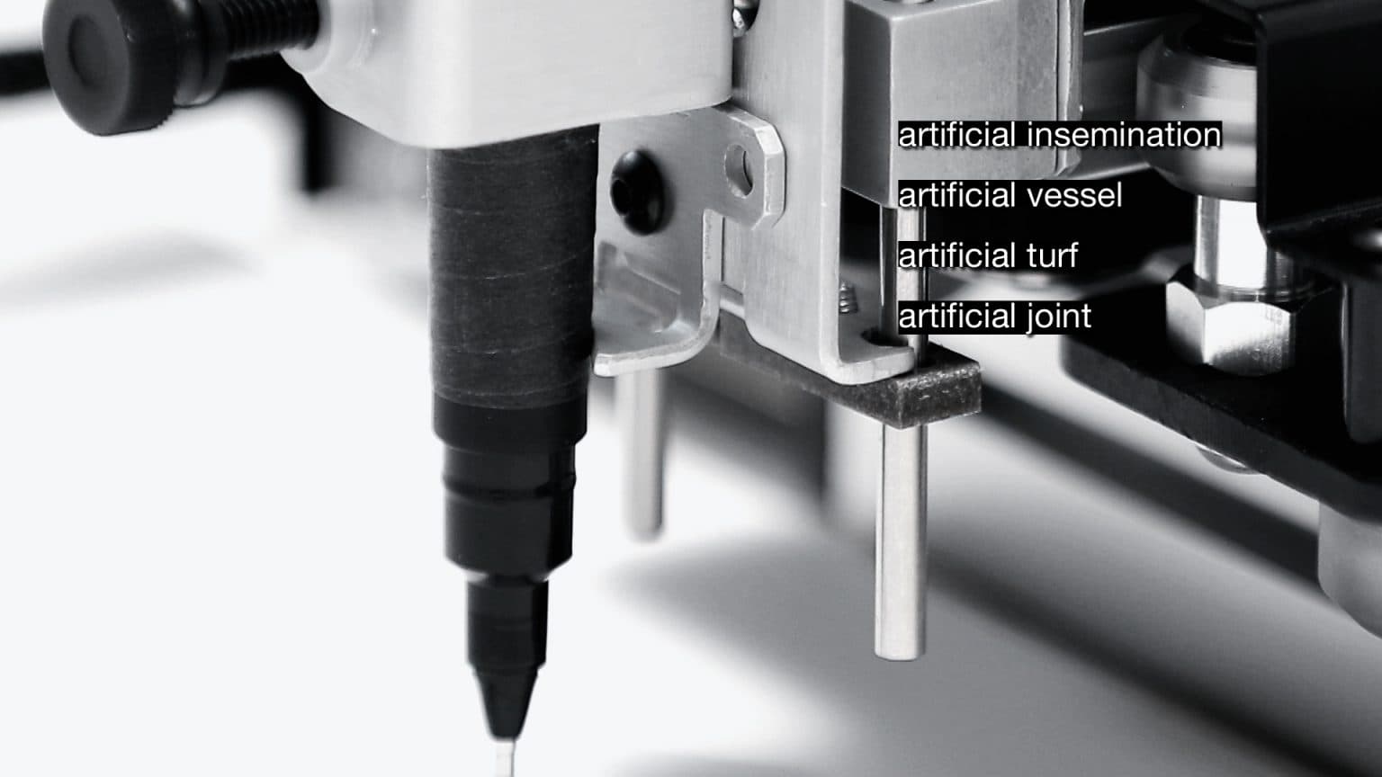 錄像中的旁白與字幕不斷地在讀句與書寫來回質問、反覆驗證。讀句的聲音如何閱讀書寫出來的內容;書寫出來的內容如何寫出它聽到的聲音?兩者何為人工智能?何為人類?人類是否存在心靈、自由意志?人類的選擇是否是人類自己的選擇?創造性思考需要透過人類心靈才能達到?人工智能透過一套複雜的演算法而所作出判斷與決策,而人類的決行是否亦由基因編碼而構成算式演算?以此,探究人類生存與當代生命樣貌之間、自然與人工、真實存在與虛擬網路、時間、記憶與感官等經驗的深思映照。