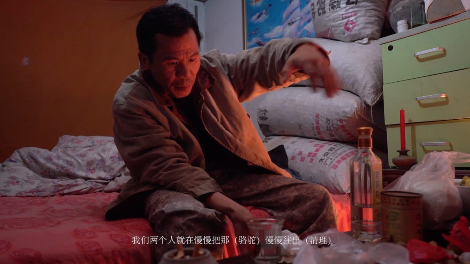 “校尉”是一位身著美國陸軍作戰服的男人,“校尉”是朋友為他起的外號,他長期參與某類非法的采掘工作,接連的失敗,然而他仍對這項工作飽含很大熱情,甚至自認天賦所在。閻洲通過影像記錄了“校尉”與同伴的工作情景,以及“校尉”自述其兄長因塌方死在墓中的經過。不得意的“校尉”反覆絮叨著這樣的離去和自身的重病對他現況的影響: 他痛惜著自己能力的衰減和情感支柱的背離,同時又希望在家族夢想的漸滅與信心無著的時刻,對自己做出某些勉勵。