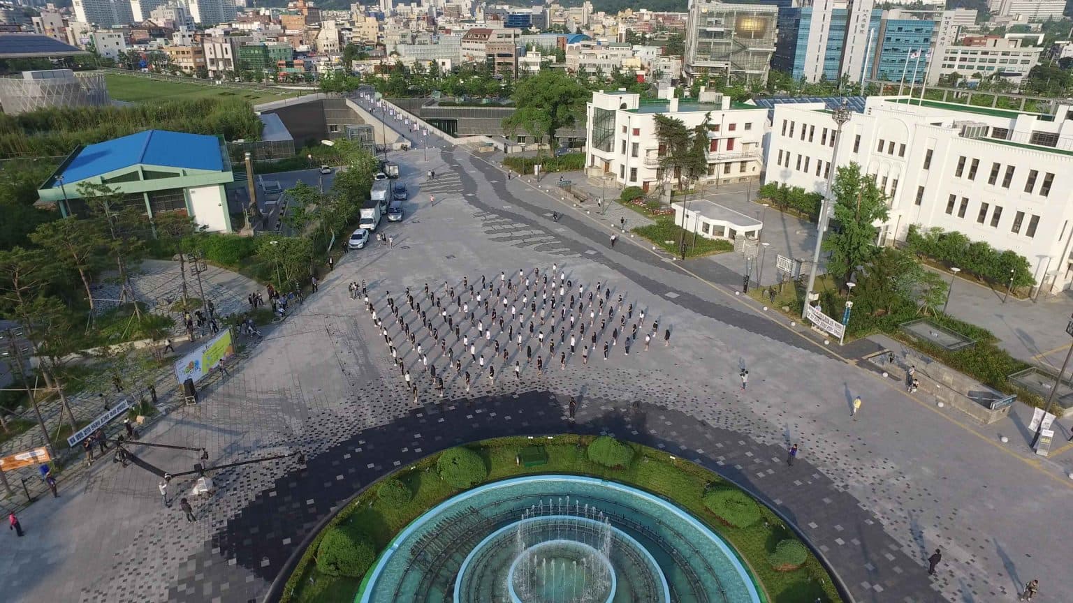 Standing like living sculptures, the participants from Hong Kong, Gwangju and Wuhan were asked to simultaneously formulate the sound of their own and personal future.