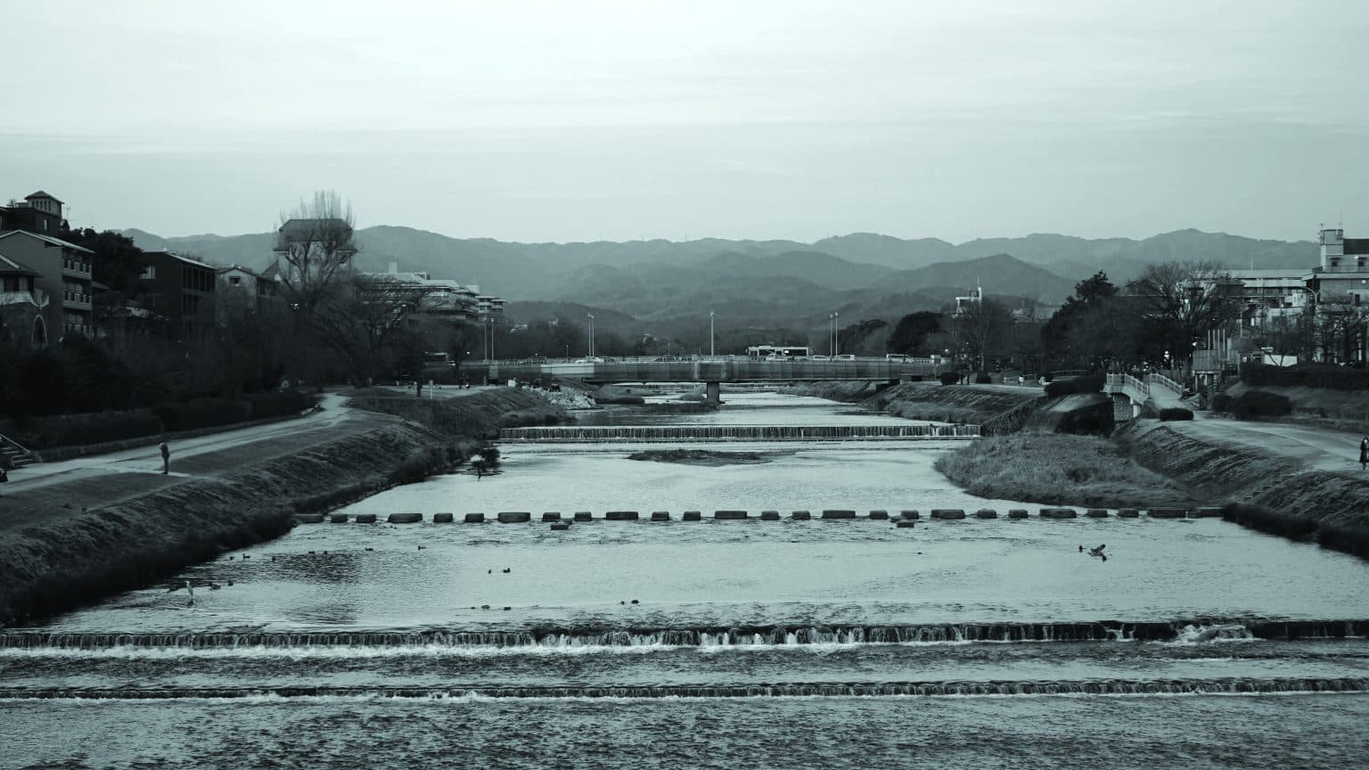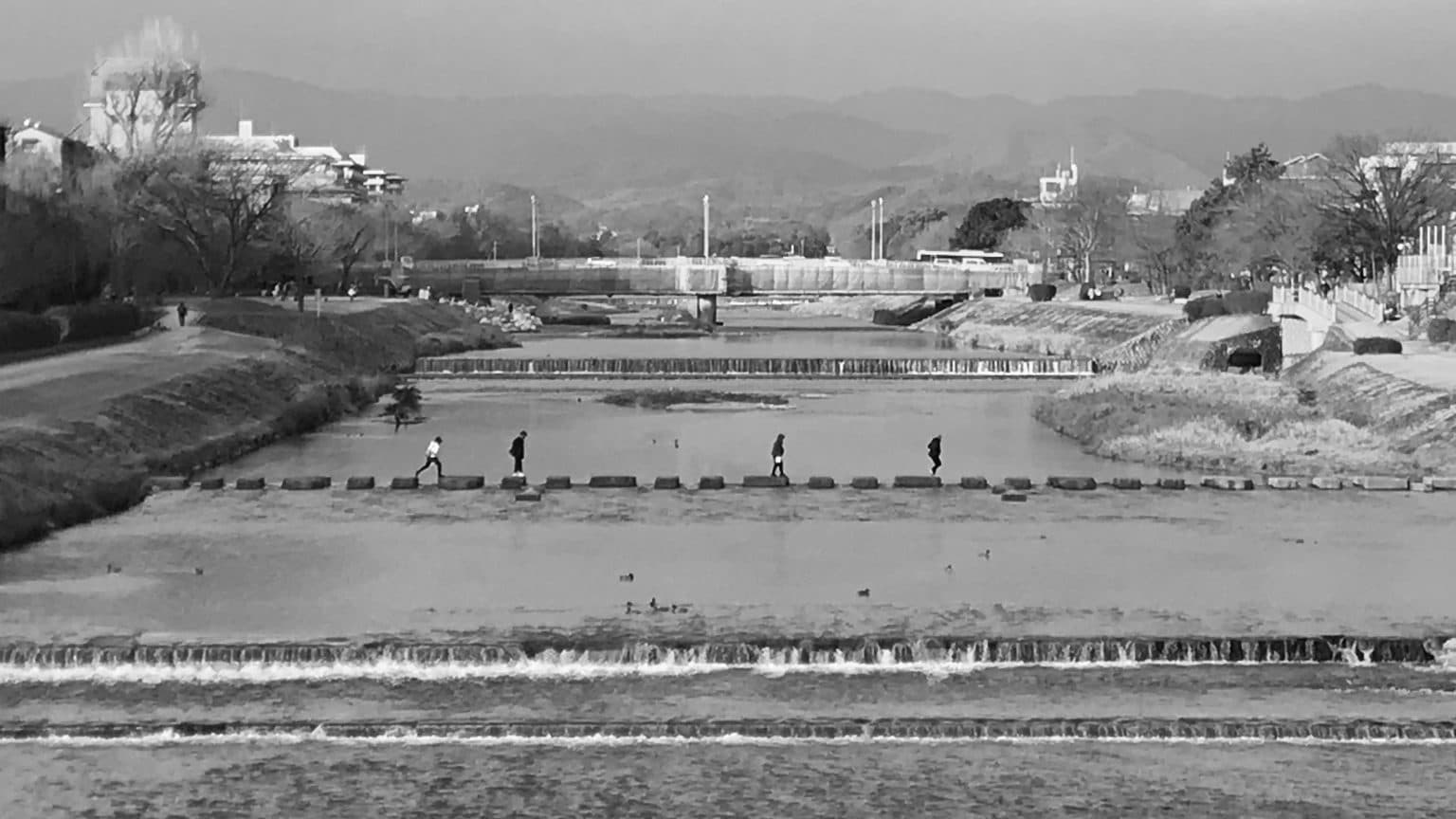 In February 2020, Lau began shooting in Kyoto, recording people crossing the Kamogawa River by the stepping stones. To capture this, Lau positioned herself in the middle of the Nijo Bridge and pointed her camera north towards the stepping stones. She began shooting whenever someone stepped along the slope to the stones and stopped when they had left the frame. Lau recorded for four hours each day, capturing a total of 100 people crossing the Kamogawa River.